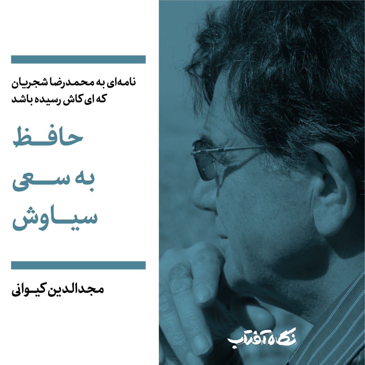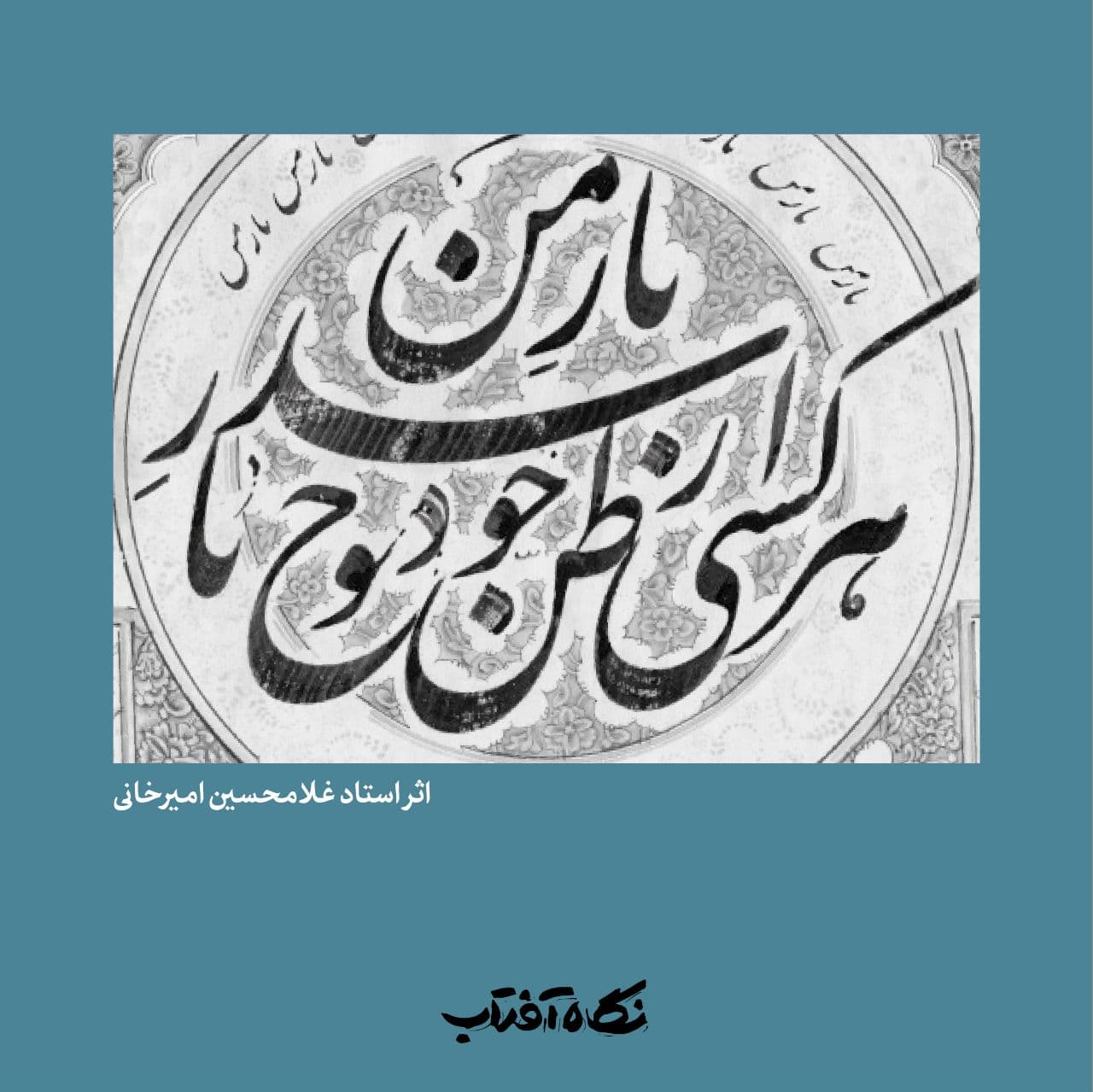 - طرح جلد این شماره خوشنویسی اختصاصی استاد غلامحسین امیرخانی برای نگاه آفتاب است.